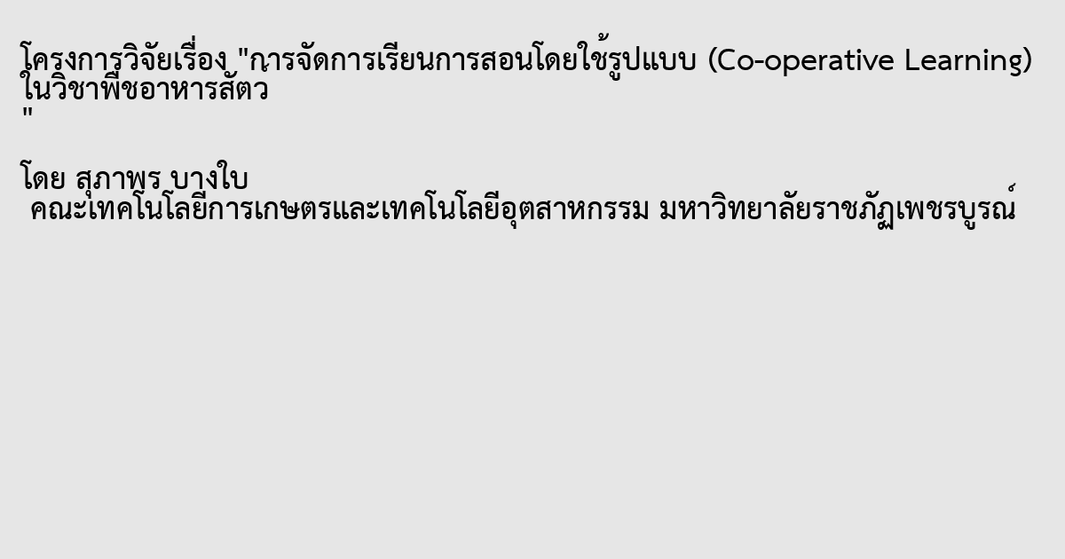 การจัดการเรียนการสอนโดยใช้รูปแบบ (Co-operative Learning) ในวิชาพืชอาหารสัตว์