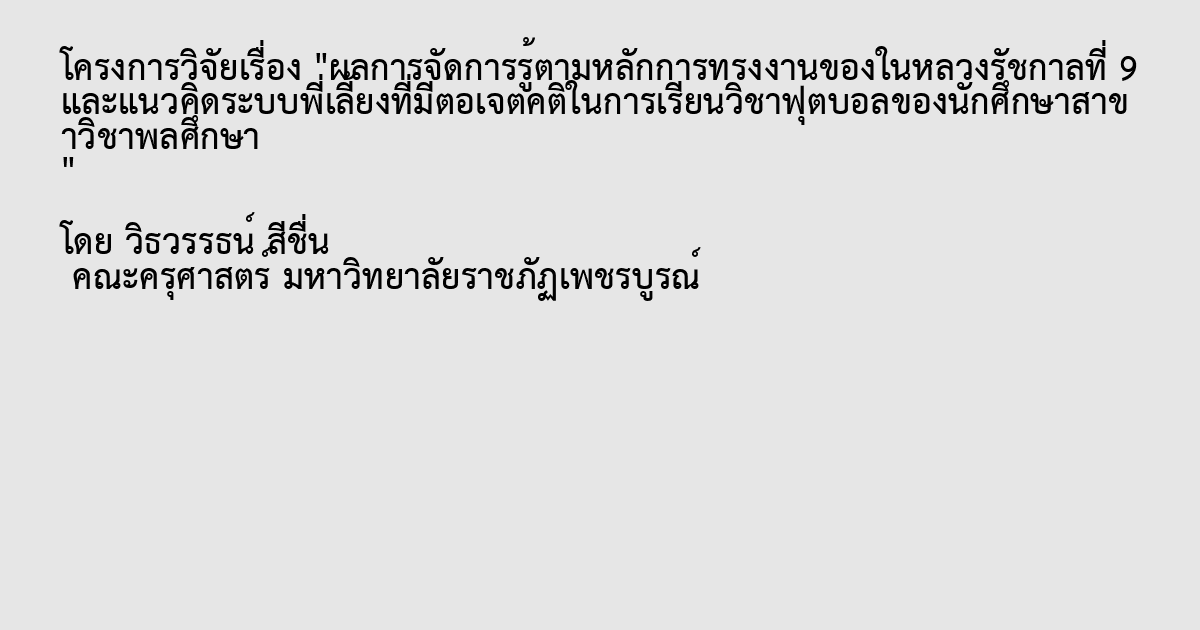 ผลการจัดการรู้ตามหลักการทรงงานของในหลวงรัชกาลที่ 9 และแนวคิดระบบพี่เลี้ยงที่มีต่อเจตคติในการเรียนวิชาฟุตบอลของนักศึกษาสาขาวิชาพลศึกษา