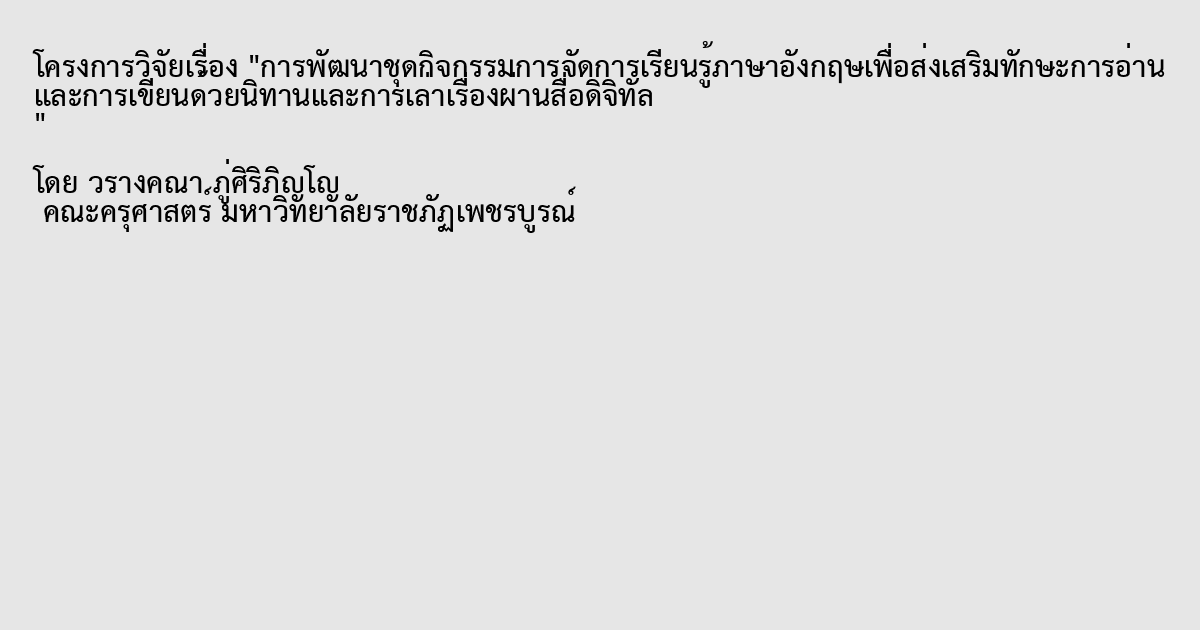 การพัฒนาชุดกิจกรรมการจัดการเรียนรู้ภาษาอังกฤษเพื่อส่งเสริมทักษะการอ่านและการเขียนด้วยนิทานและการเล่าเรื่องผ่านสื่อดิจิทัล
