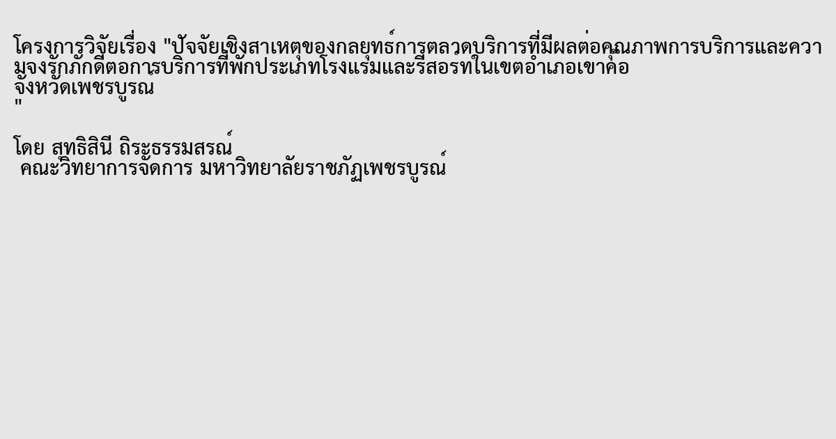ปัจจัยเชิงสาเหตุของกลยุทธ์การตลาดบริการที่มีผลต่อคุณภาพการบริการและความจงรักภักดีต่อการบริการที่พักประเภทโรงแรมและรีสอร์ทในเขตอำเภอเขาค้อ จังหวัดเพชรบูรณ์