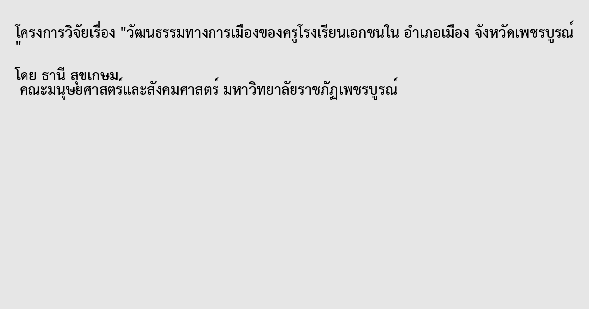 วัฒนธรรมทางการเมืองของครูโรงเรียนเอกชนใน อำเภอเมือง จังหวัดเพชรบูรณ์
