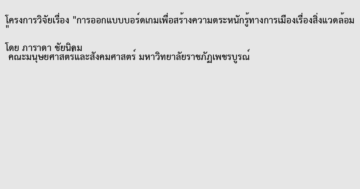 การออกแบบบอร์ดเกมเพื่อสร้างความตระหนักรู้ทางการเมืองเรื่องสิ่งแวดล้อม