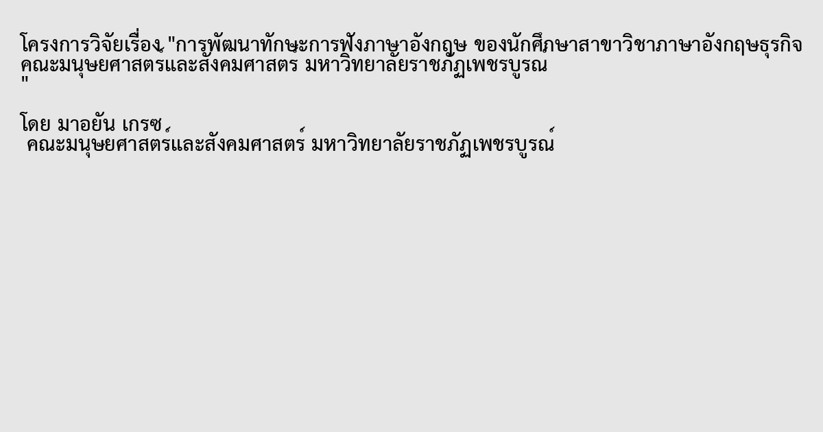 การพัฒนาทักษะการฟังภาษาอังกฤษ ของนักศึกษาสาขาวิชาภาษาอังกฤษธุรกิจ คณะมนุษยศาสตร์และสังคมศาสตร์ มหาวิทยาลัยราชภัฏเพชรบูรณ์