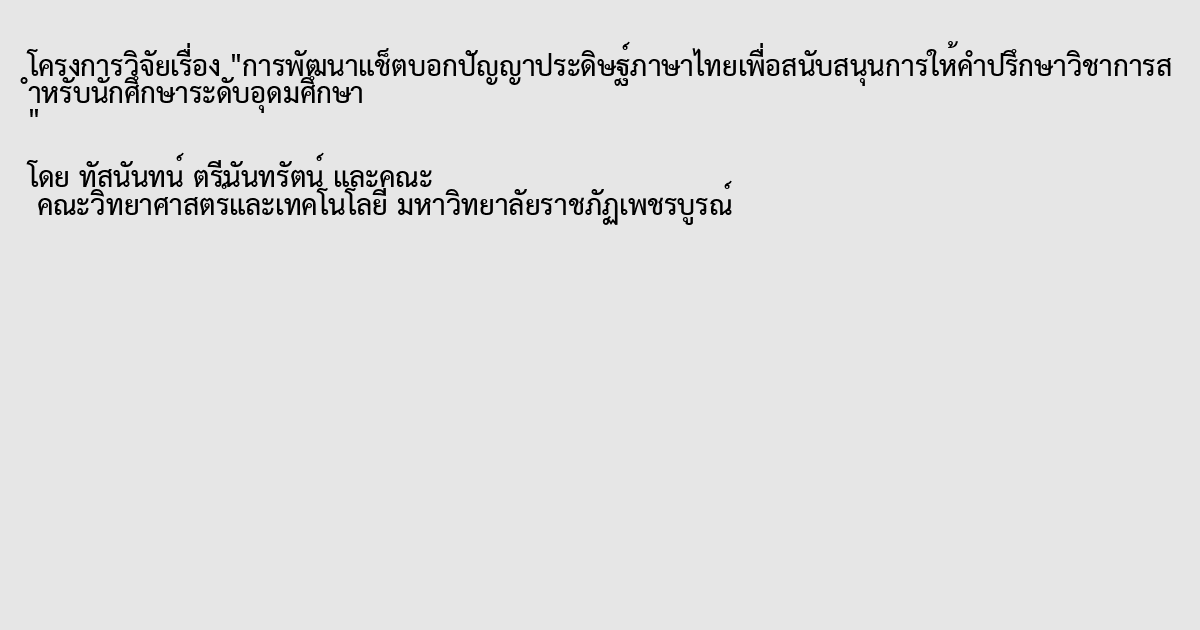 การพัฒนาแช็ตบอกปัญญาประดิษฐ์ภาษาไทยเพื่อสนับสนุนการให้คำปรึกษาวิชาการสำหรับนักศึกษาระดับอุดมศึกษา