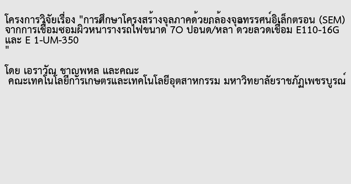 การศึกษาโครงสร้างจุลภาคด้วยกล้องจุลทรรศน์อิเล็กตรอน (SEM) จากการเชื่อมซ่อมผิวหน้ารางรถไฟขนาด 7O ปอนด์/หลา ด้วยลวดเชื่อม E110-16G และ E 1-UM-350
