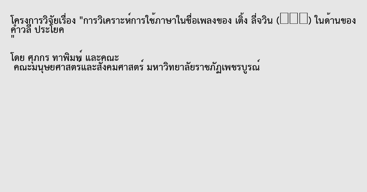 การวิเคราะห์การใช้ภาษาในชื่อเพลงของ เติ้ง ลี่จวิน (邓丽君) ในด้านของ คำวลี ประโยค