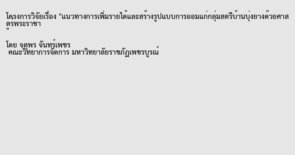 แนวทางการเพิ่มรายได้และสร้างรูปแบบการออมแก่กลุ่มสตรีบ้านบุ่งยางด้วยศาสตร์พระราชา