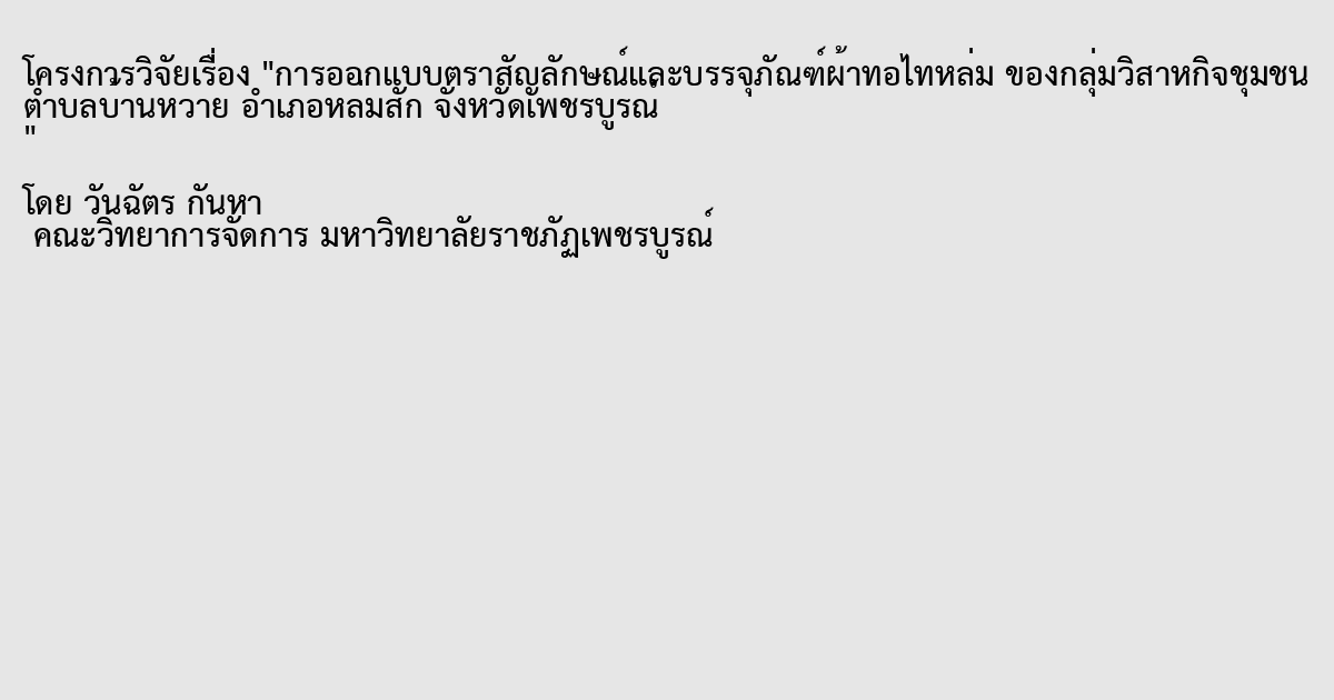 การออกแบบตราสัญลักษณ์,บรรจุภัณฑ์ผ้าทอไทหล่ม,วิสาหกิจชุมนกลุ่มผ้าทอไทหล่ม,บ้านหวาย,Logo design,Packing design,Thai-Lom Woven fabrics of Thai-Lom Baan Wai community enterprise group