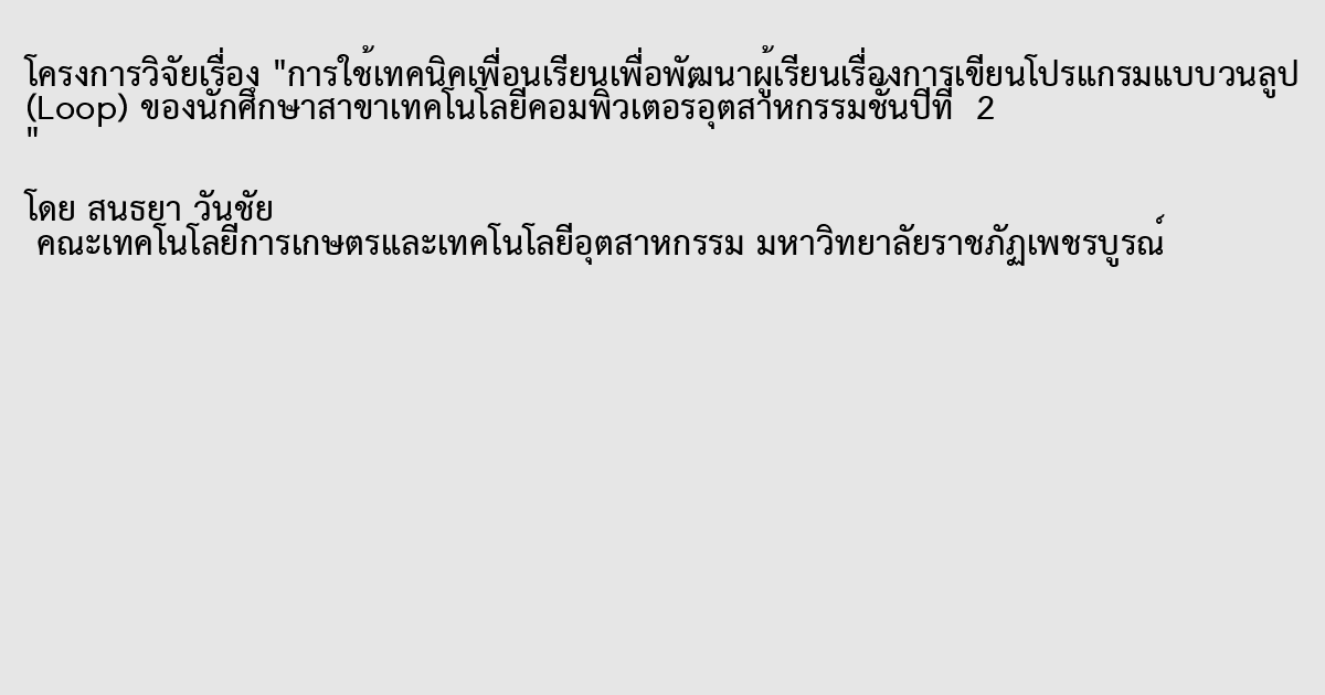 การใช้เทคนิคเพื่อนเรียนเพื่อพัฒนาผู้เรียนเรื่องการเขียนโปรแกรมแบบวนลูป (Loop) ของนักศึกษาสาขาเทคโนโลยีคอมพิวเตอร์อุตสาหกรรมชั้นปีที่ 2