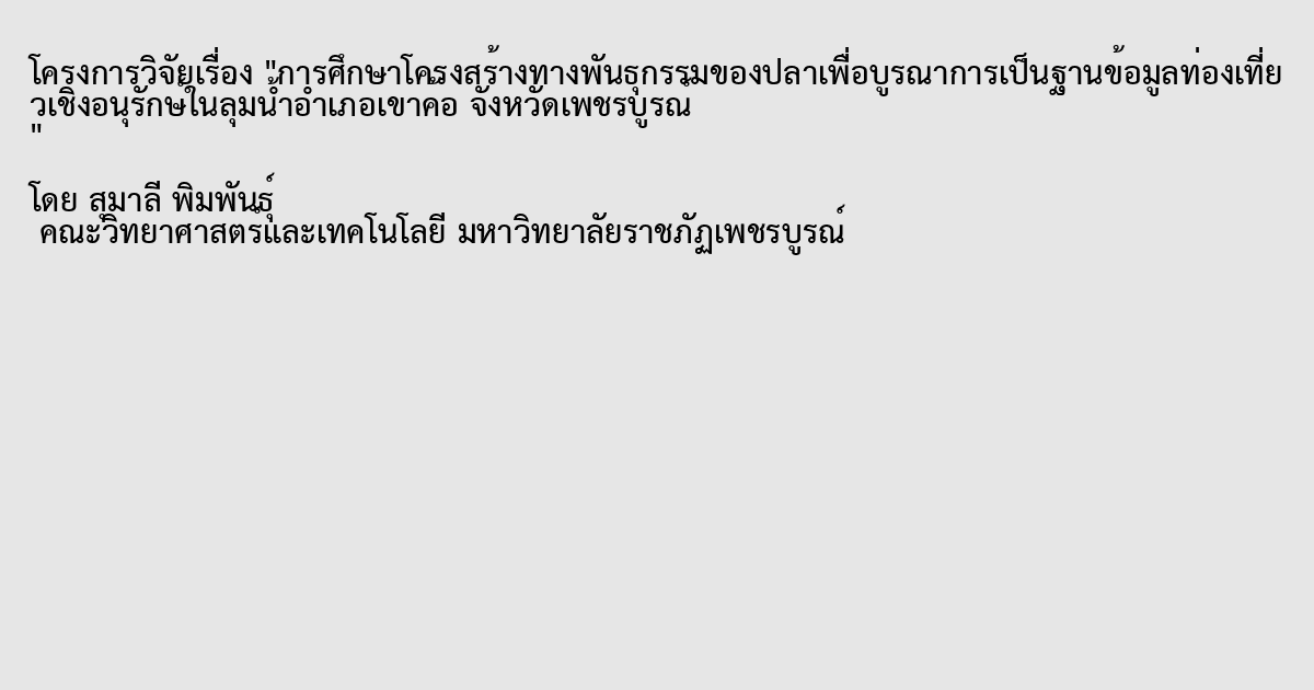 การศึกษาโครงสร้างทางพันธุกรรมของปลาเพื่อบูรณาการเป็นฐานข้อมูลท่องเที่ยวเชิงอนุรักษ์ในลุ่มน้ำอำเภอเขาค้อ จังหวัดเพชรบูรณ์