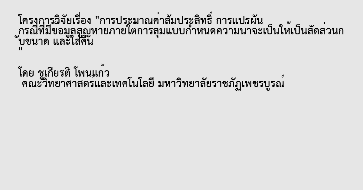 การประมาณค่าสัมประสิทธิ์ การแปรผัน กรณีที่มีข้อมูลสูญหายภายใต้การสุ่มแบบกำหนดความน่าจะเป็นให้เป็นสัดส่วนกับขนาด และใส่คืน