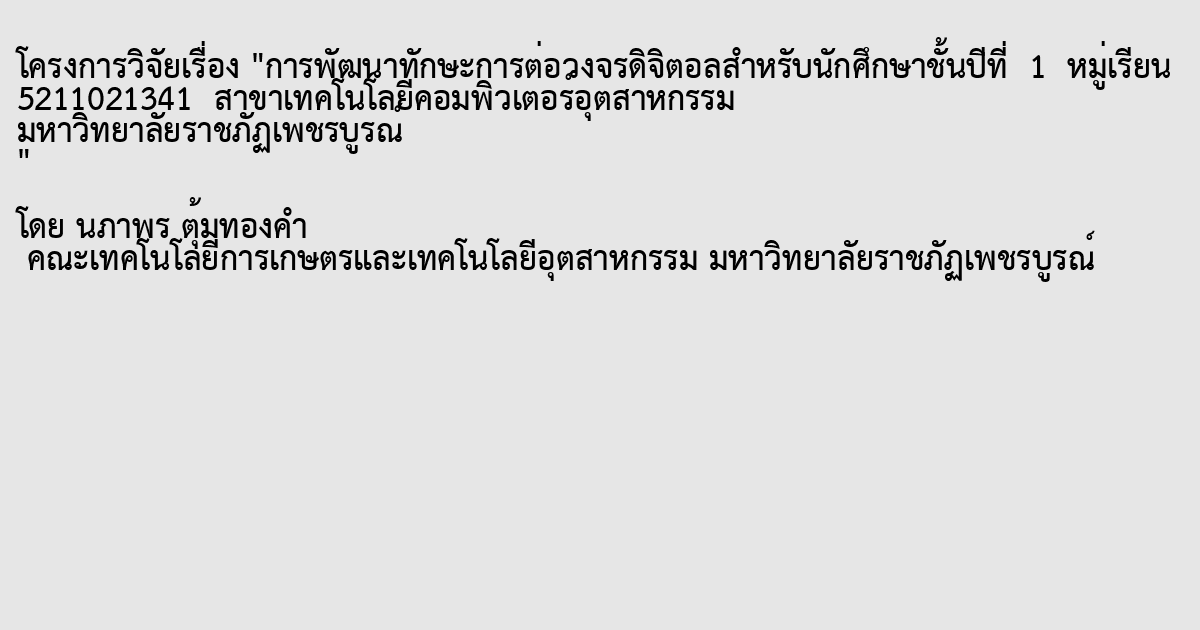 การพัฒนาทักษะการต่อวงจรดิจิตอลสำหรับนักศึกษาชั้นปีที่ 1 หมู่เรียน 5211021341 สาขาเทคโนโลยีคอมพิวเตอร์อุตสาหกรรม มหาวิทยาลัยราชภัฏเพชรบูรณ์