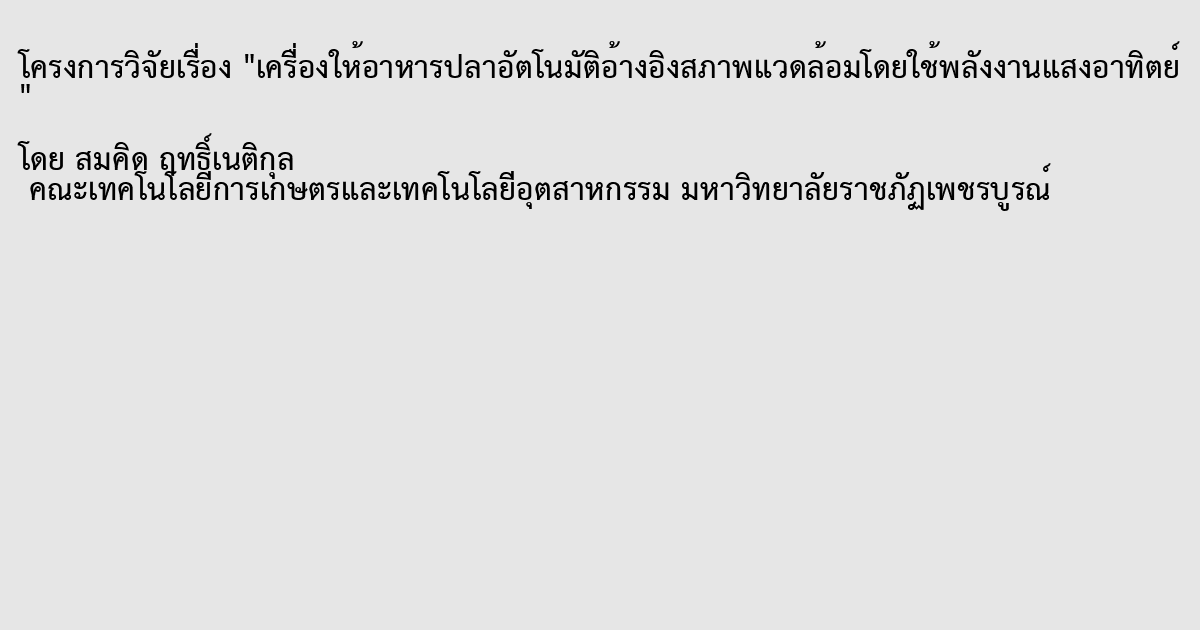 เครื่องให้อาหารปลาอัตโนมัติอ้างอิงสภาพแวดล้อมโดยใช้พลังงานแสงอาทิตย์