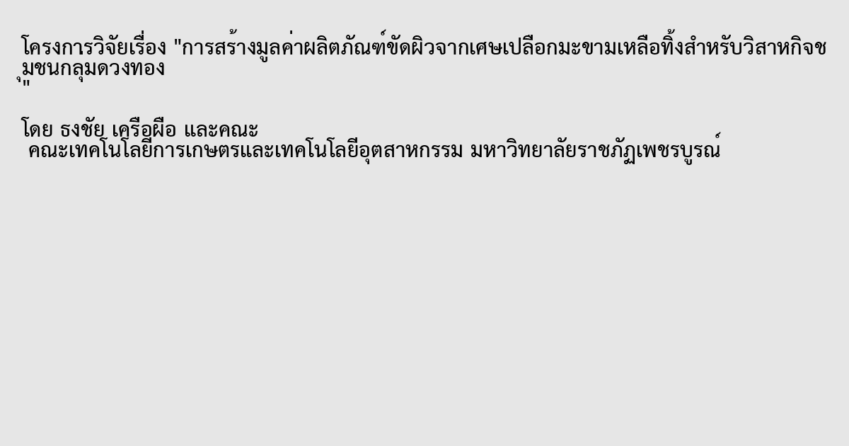 การสร้างมูลค่าผลิตภัณฑ์ขัดผิวจากเศษเปลือกมะขามเหลือทิ้งสำหรับวิสาหกิจชุมชนกลุ่มดวงทอง