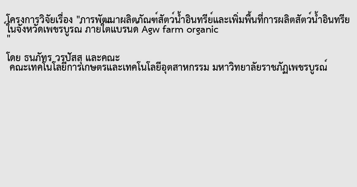 การพัฒนาผลิตภัณฑ์สัตว์น้ำอินทรีย์และเพิ่มพื้นที่การผลิตสัตว์น้ำอินทรีย์ในจังหวัดเพชรบูรณ์ ภายใต้แบรนด์ Agw farm organic