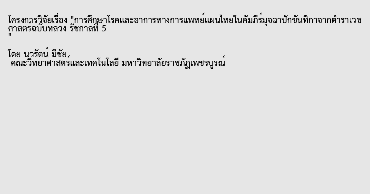 การศึกษาโรคและอาการทางการแพทย์แผนไทยในคัมภีร์มุจฉาปักขันทิกาจากตำราเวชศาสตร์ฉบับหลวง รัชกาลที่ 5