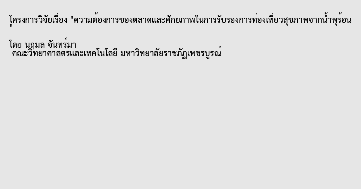 [ข้อมูลทั่วไป] 2564 : ความต้องการของตลาดและศักยภา...งเที่ยวสุขภาพจากน้ำพุร้อน