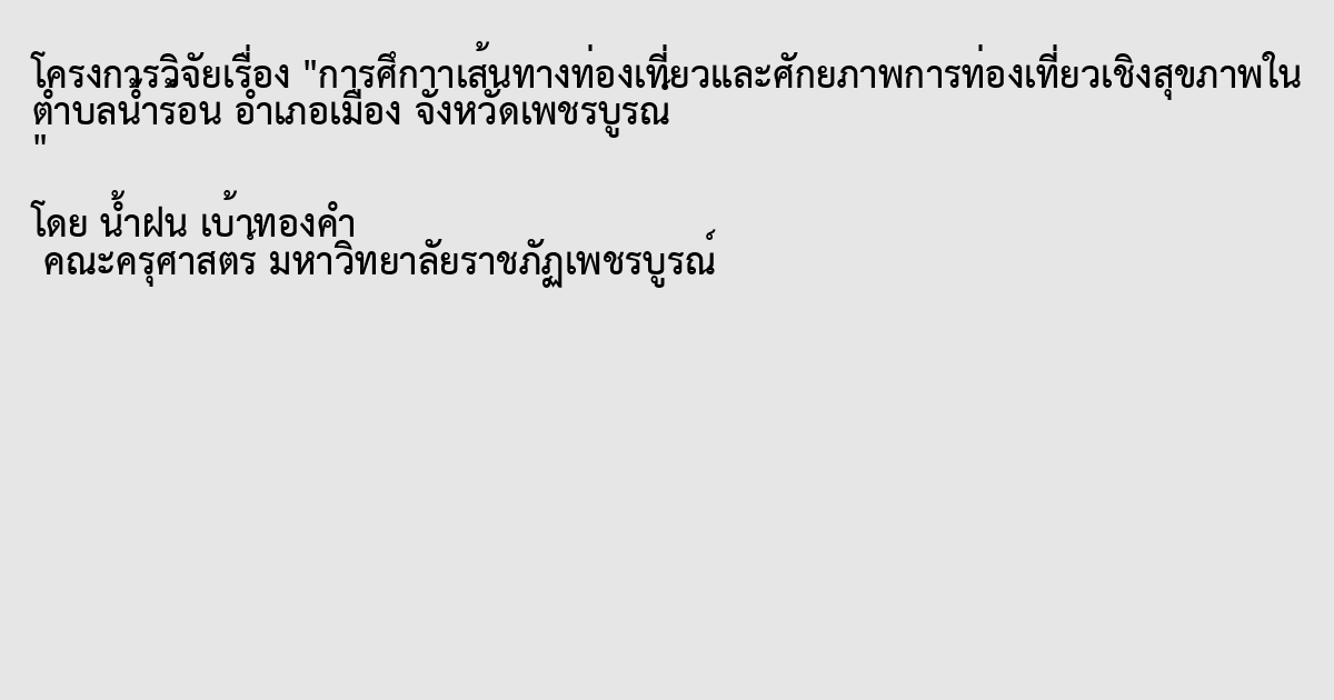 การศึกาาเส้นทางท่องเที่ยวและศักยภาพการท่องเที่ยวเชิงสุขภาพใน ตำบลน้ำร้อน อำเภอเมือง จังหวัดเพชรบูรณ์