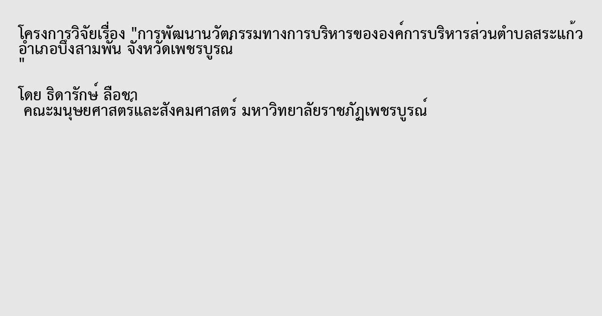 การพัฒนานวัตกรรมทางการบริหารขององค์การบริหารส่วนตำบลสระแก้ว อำเภอบึงสามพัน จังหวัดเพชรบูรณ์
