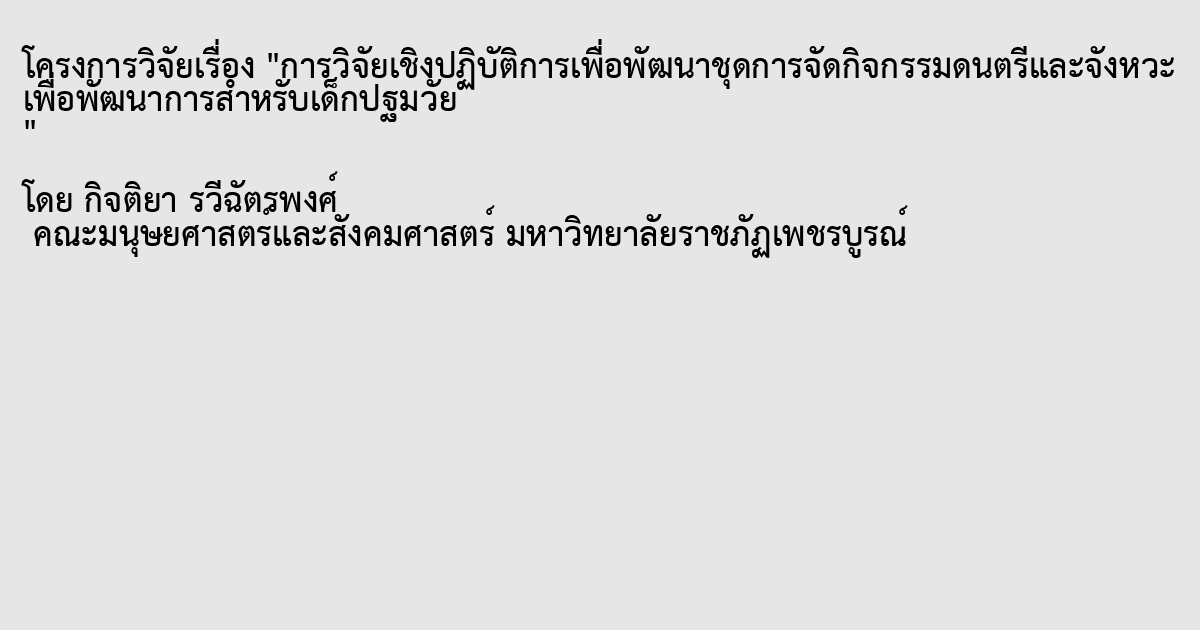 การวิจัยเชิงปฏิบัติการเพื่อพัฒนาชุดการจัดกิจกรรมดนตรีและจังหวะ เพื่อพัฒนาการสำหรับเด็กปฐมวัย
