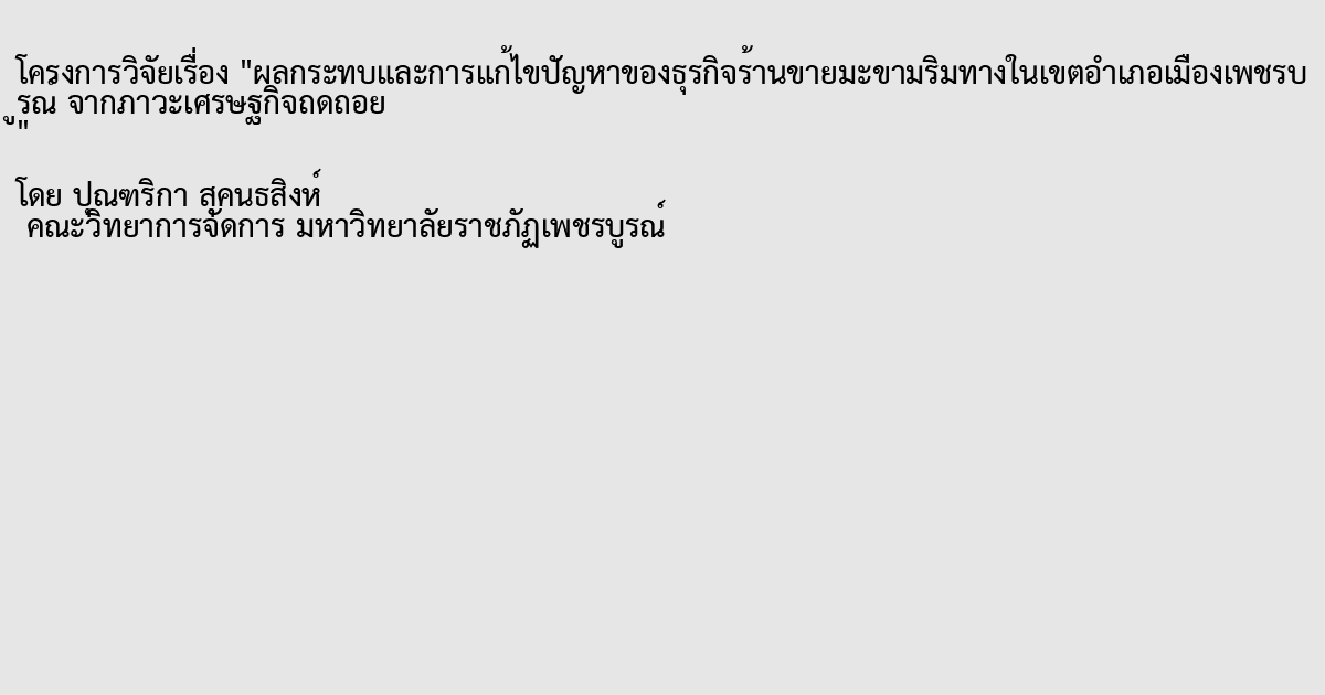 ผลกระทบและการแก้ไขปัญหาของธุรกิจร้านขายมะขามริมทางในเขตอำเภอเมืองเพชรบูรณ์ จากภาวะเศรษฐกิจถดถอย