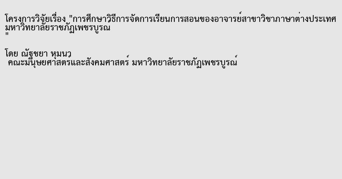 การศึกษาวิธีการจัดการเรียนการสอนของอาจารย์สาขาวิชาภาษาต่างประเทศ มหาวิทยาลัยราชภัฏเพชรบูรณ์