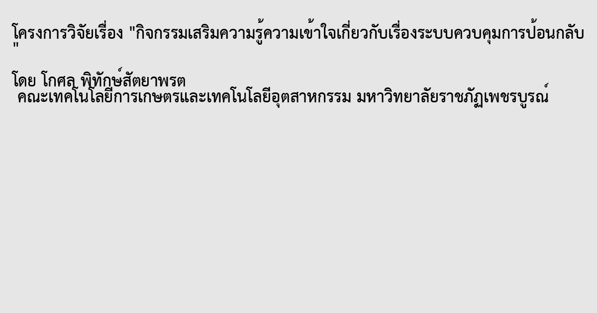 กิจกรรมเสริมความรู้ความเข้าใจเกี่ยวกับเรื่องระบบควบคุมการป้อนกลับ