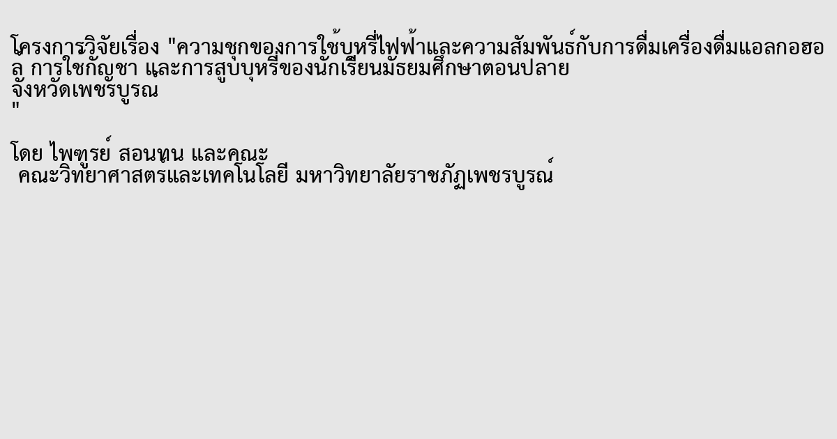 ความชุกของการใช้บุหรี่ไฟฟ้าและความสัมพันธ์กับการดื่มเครื่องดื่มแอลกอฮอล์ การใช้กัญชา และการสูบบุหรี่ของนักเรียนมัธยมศึกษาตอนปลาย จังหวัดเพชรบูรณ์