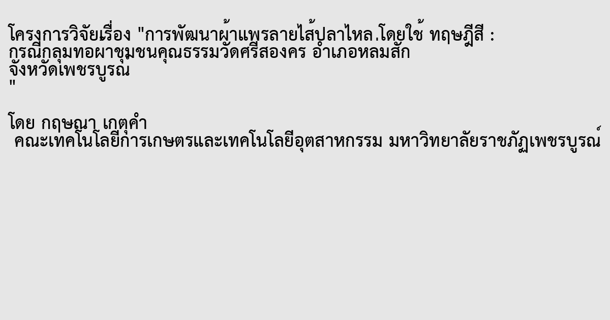 การพัฒนาผ้าแพรลายไส้ปลาไหล โดยใช้ ทฤษฎีสี : กรณีกลุ่มทอผ้าชุมชนคุณธรรมวัดศรีสองคร อำเภอหล่มสัก จังหวัดเพชรบูรณ์