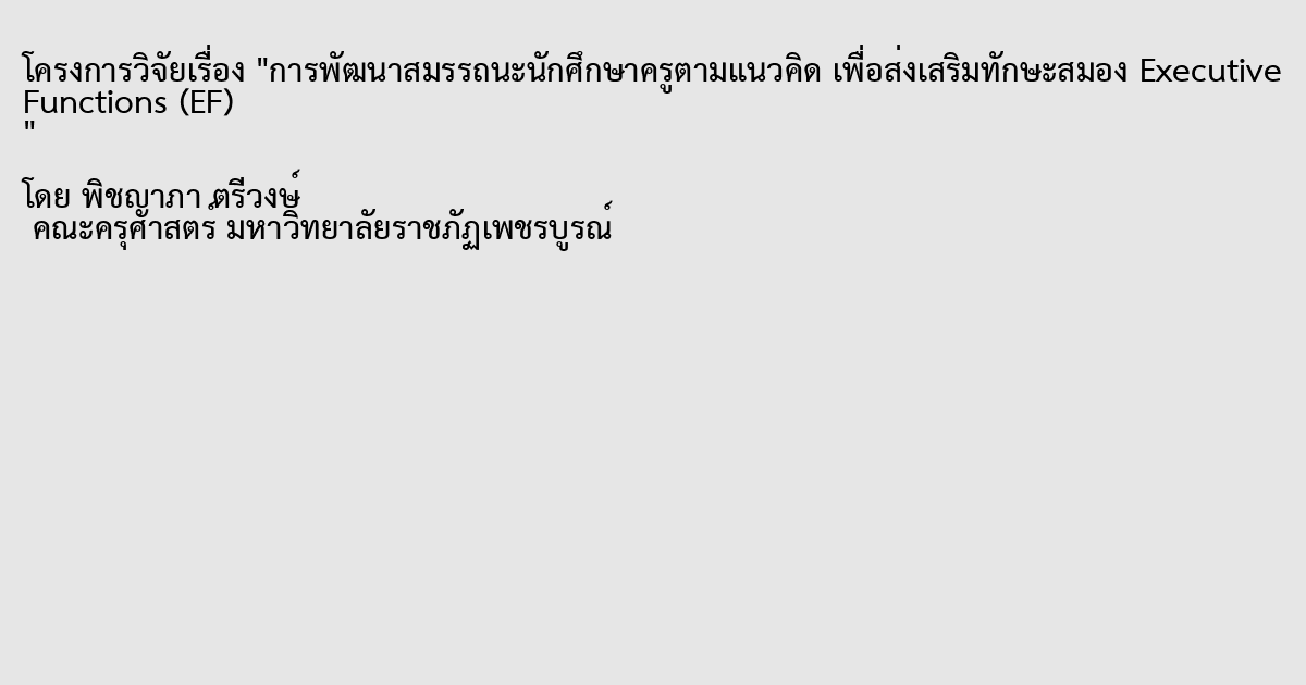 การพัฒนาสมรรถนะนักศึกษาครูตามแนวคิด เพื่อส่งเสริมทักษะสมอง Executive Functions (EF)