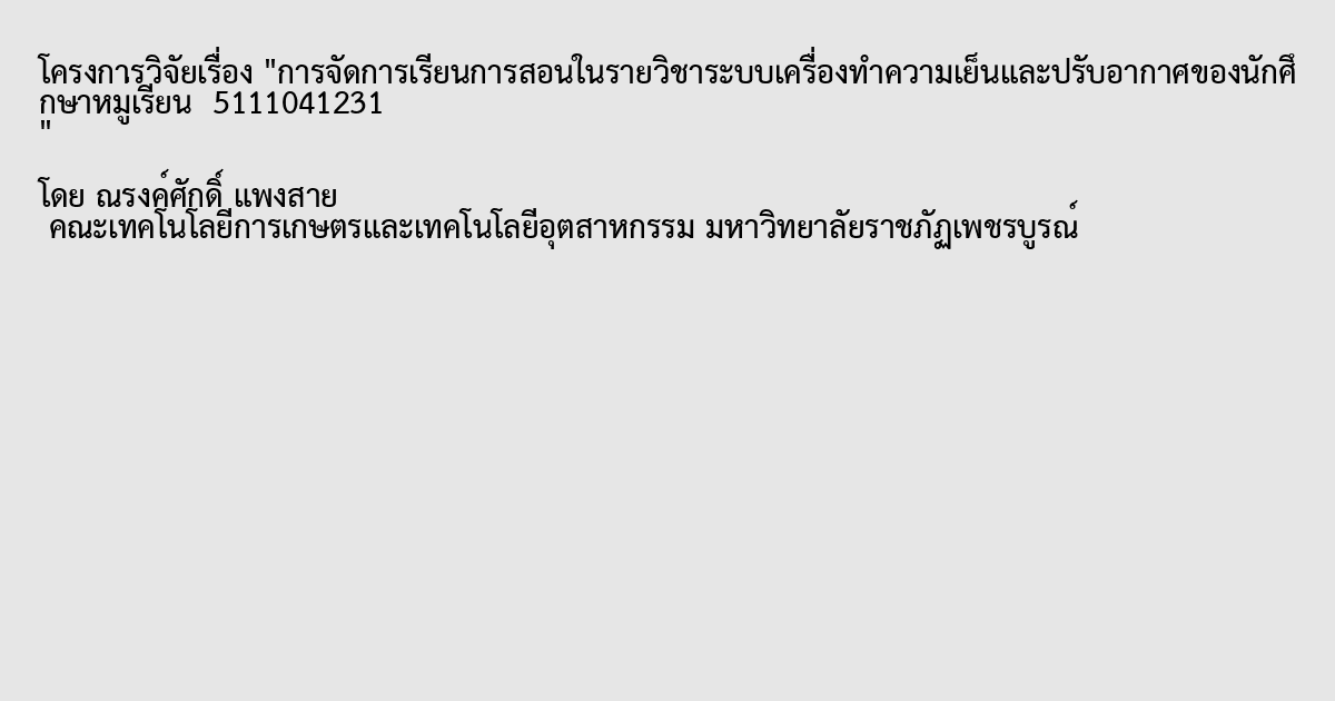 การจัดการเรียนการสอนในรายวิชาระบบเครื่องทำความเย็นและปรับอากาศของนักศึกษาหมู่เรียน 5111041231