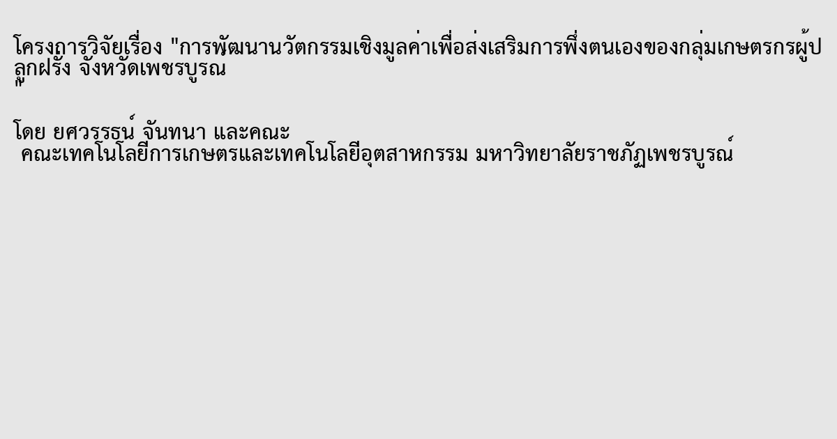 การพัฒนานวัตกรรมเชิงมูลค่าเพื่อส่งเสริมการพึ่งตนเองของกลุ่มเกษตรกรผู้ปลูกฝรั่ง จังหวัดเพชรบูรณ์