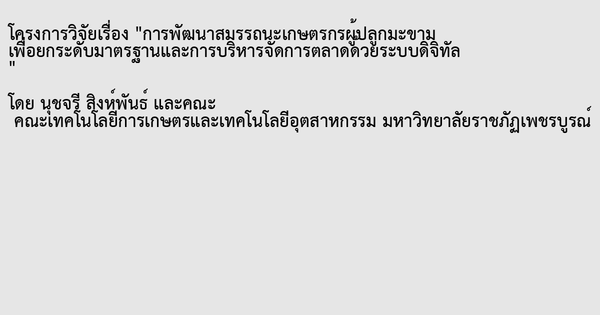 โครงการวิจัยย่อยที่ 1 การสร้างกลยุทธ์และกระบวนการทางการตลาดที่มีประสิทธิภาพสำหรับเกษตรกรผู้ปลูกมะขามหวานเพื่อเพิ่มความสามารถในการแข่งขัน การวิจัยในครั้งนี้มีวัตถุประสงค์เพื่อ 1) ศึกษาพฤติกรรมการตัดสินใจซื้อมะขามออนไลน์ของผู้บริโภค 2) ศึกษากลยุทธ์การสื่อสารการตลาดต่อการตัดสินใจซื้อมะขามออนไลน์ของผู้บริโภค กลุ่มตัวอย่างคือ ผู้บริโภคที่ซื้อมะขาม จำนวน 400 คน ได้จากการคำนวณตัวอย่างจากสูตรของทาโร่ ยามาเน่ การศึกษาครั้งนี้เก็บรวบรวมข้อมูลโดยใช้แบบสอบถามออนไลน์เป็นเครื่องมือในการเก็บแบบสอบถาม สถิติที่ใช้ในการวิเคราะห์ข้อมูลครั้งนี้ใช้โปรแกรมสำเร็จรูปได้แก่ SPSS วิเคราะห์ค่าความถี่ (Frequency) ค่าร้อยละ (Percentage) ค่าเฉลี่ยและส่วนเบี่ยงเบนมาตรฐาน