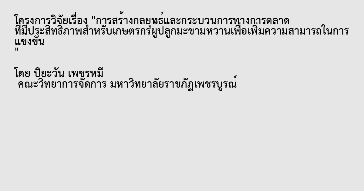 การสร้างกลยุทธ์และกระบวนการทางการตลาด ที่มีประสิทธิภาพสำหรับเกษตรกรผู้ปลูกมะขามหวานเพื่อเพิ่มความสามารถในการแข่งขัน