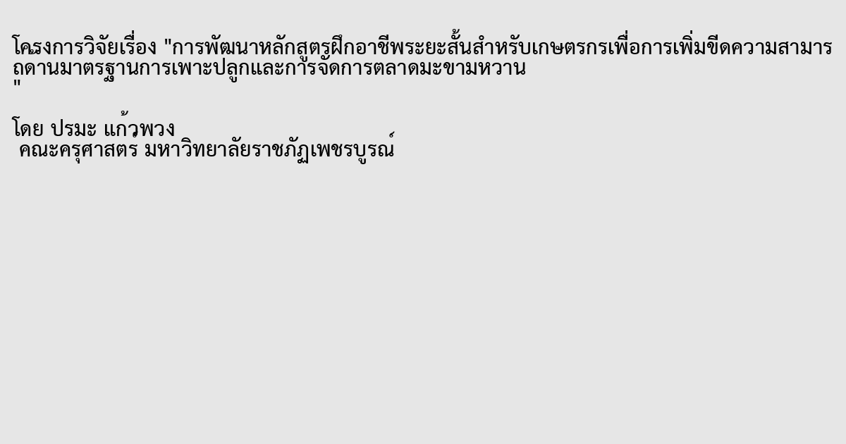 การพัฒนาหลักสูตรฝึกอาชีพระยะสั้นสำหรับเกษตรกรเพื่อการเพิ่มขีดความสามารถด้านมาตรฐานการเพาะปลูกและการจัดการตลาดมะขามหวาน