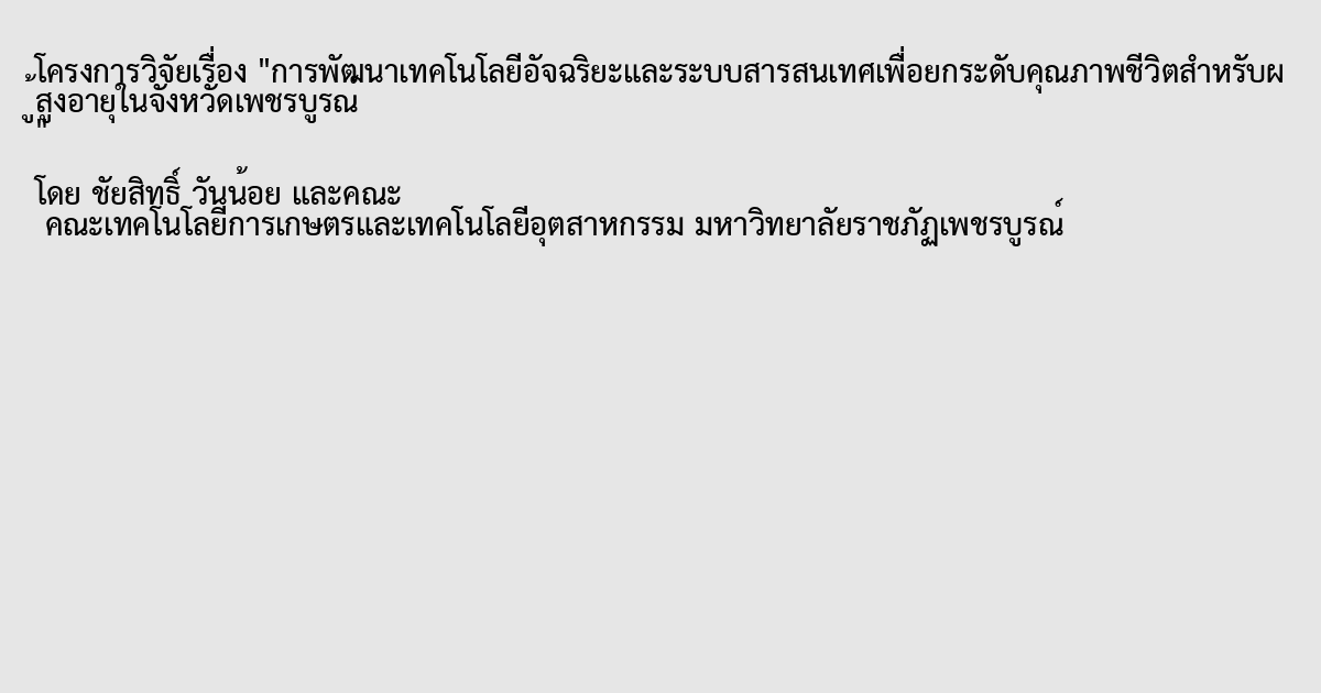 การพัฒนาเทคโนโลยีอัจฉริยะและระบบสารสนเทศเพื่อยกระดับคุณภาพชีวิตสำหรับผู้สูงอายุในจังหวัดเพชรบูรณ์