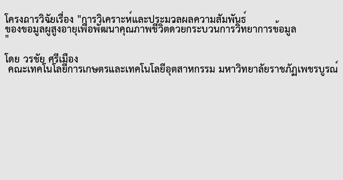 การวิเคราะห์และประมวลผลความสัมพันธ์ของข้อมูลผู้สูงอายุเพื่อพัฒนาคุณภาพชีวิตด้วยกระบวนการวิทยาการข้อมูล