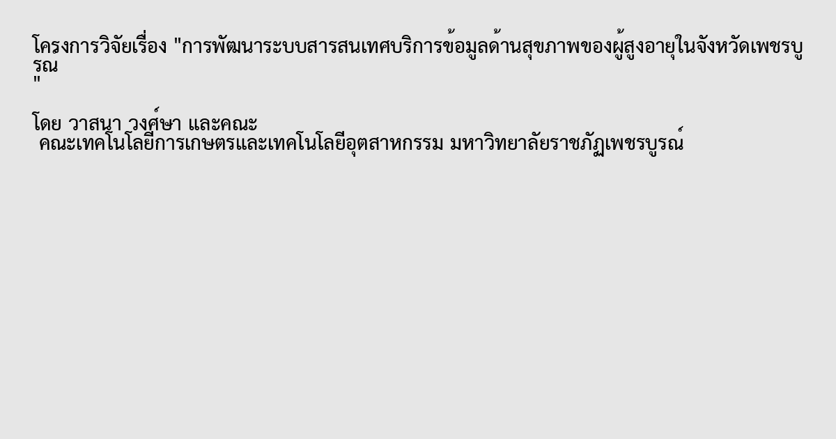 การพัฒนาระบบสารสนเทศบริการข้อมูลด้านสุขภาพของผู้สูงอายุในจังหวัดเพชรบูรณ์