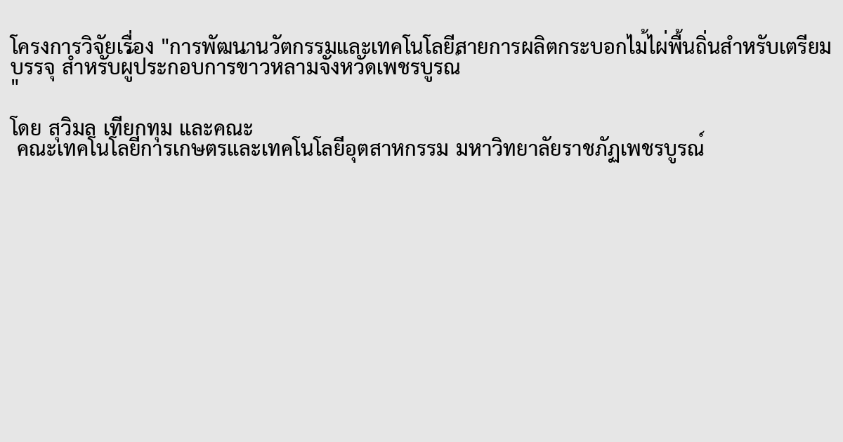การพัฒนานวัตกรรมและเทคโนโลยี,สายการผลิตกระบอกไม้ไผ่พื้นถิ่น,ข้าวหลามเพชรบูรณ์.,Innovation Development and Production,Line Technology of Local bamboo,Phetchabun Glutinous Rice Roasted in Bamboo Joints.