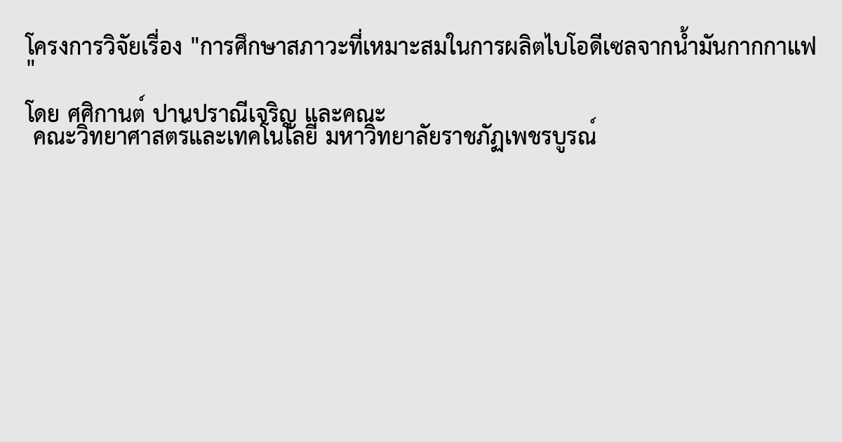 การศึกษาสภาวะที่เหมาะสมในการผลิตไบโอดีเซลจากน้ำมันกากกาแฟ