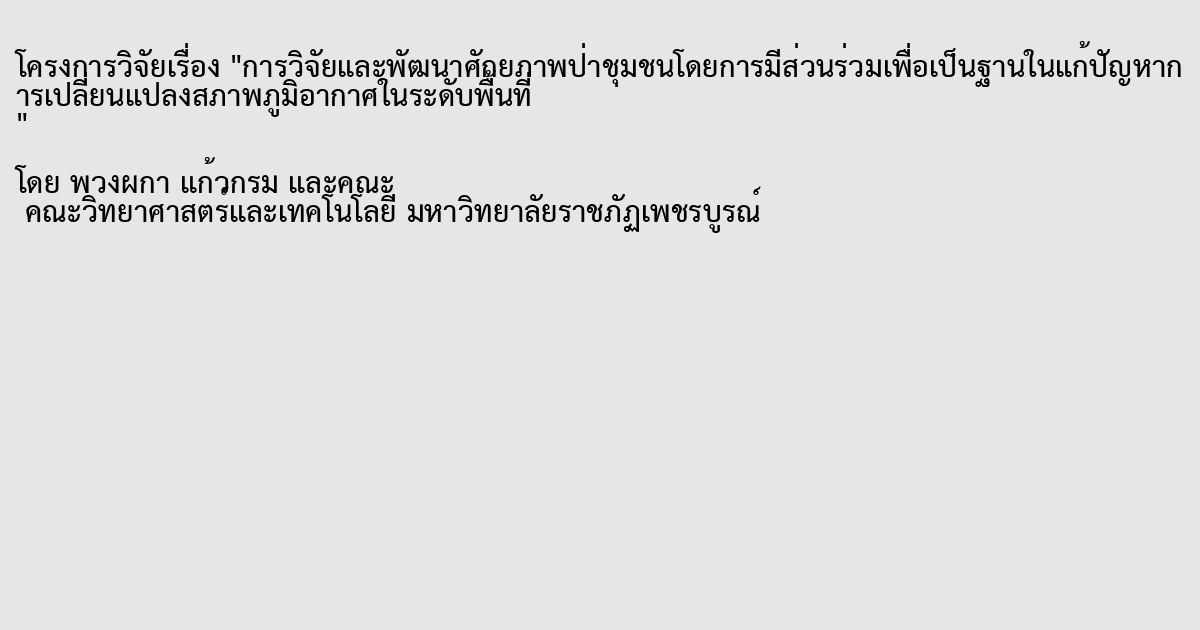 ป่าชุมชน,การเปลี่ยนแปลงสภาพภูมิอากาศ,จังหวัดเพชรบูรณ์,Forest community,Potential,Climate change,Phetchabun Province