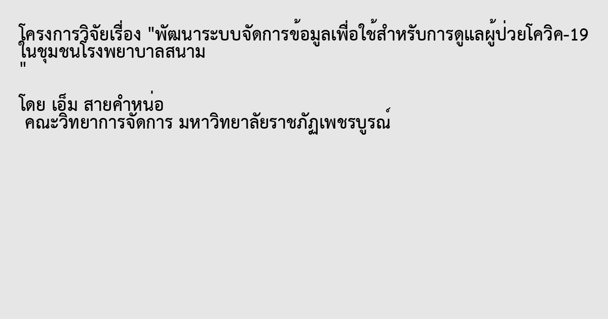 พัฒนาระบบจัดการข้อมูลเพื่อใช้สำหรับการดูแลผู้ป่วยโควิค-19 ในชุมชนโรงพยาบาลสนาม