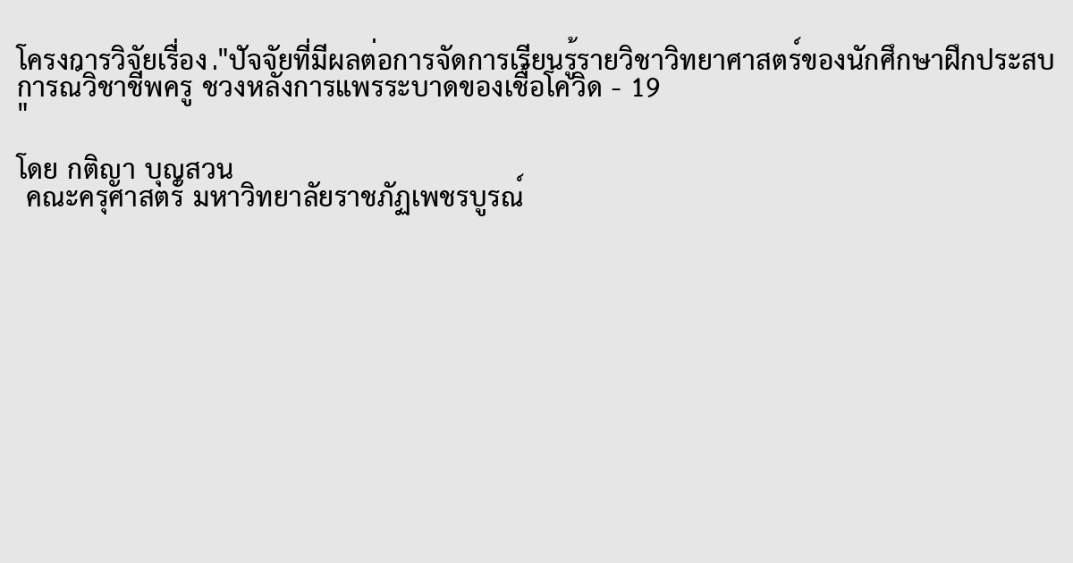 ปัจจัยที่มีผลต่อการจัดการเรียนรู้รายวิชาวิทยาศาสตร์ของนักศึกษาฝึกประสบการณ์วิชาชีพครู ช่วงหลังการแพร่ระบาดของเชื้อโควิด - 19
