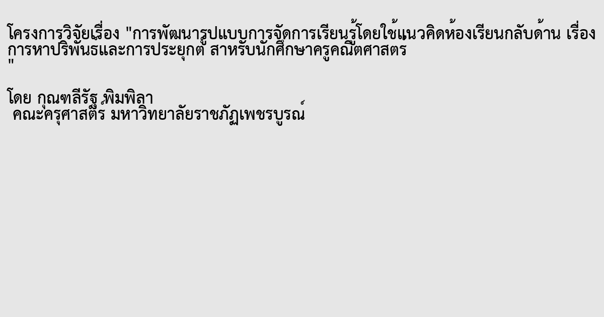 การพัฒนารูปแบบการจัดการเรียนรู้โดยใช้แนวคิดห้องเรียนกลับด้าน เรื่อง การหาปริพันธ์และการประยุกต์ สาหรับนักศึกษาครูคณิตศาสตร์