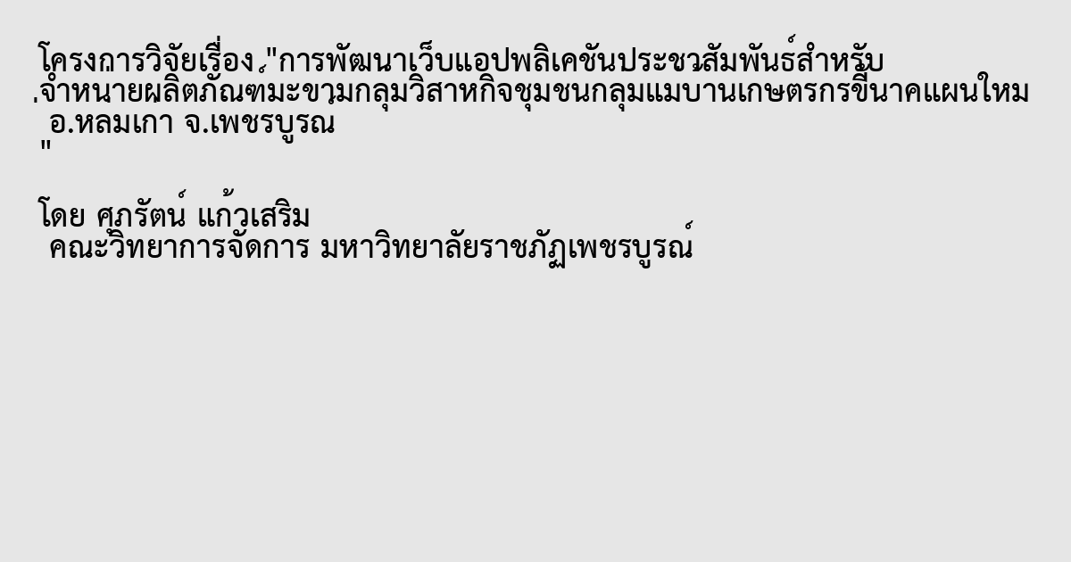 การพัฒนาเว็บแอปพลิเคชันประชาสัมพันธ์สำหรับ จำหน่ายผลิตภัณฑ์มะขามกลุ่มวิสาหกิจชุมชนกลุ่มแม่บ้านเกษตรกรขี้นาคแผนใหม่ อ.หล่มเก่า จ.เพชรบูรณ์