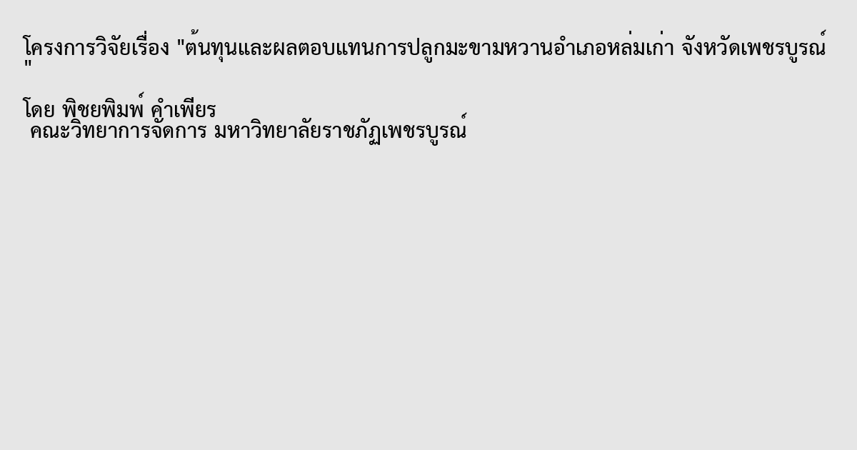 ต้นทุนและผลตอบแทนการปลูกมะขามหวานอำเภอหล่มเก่า จังหวัดเพชรบูรณ์