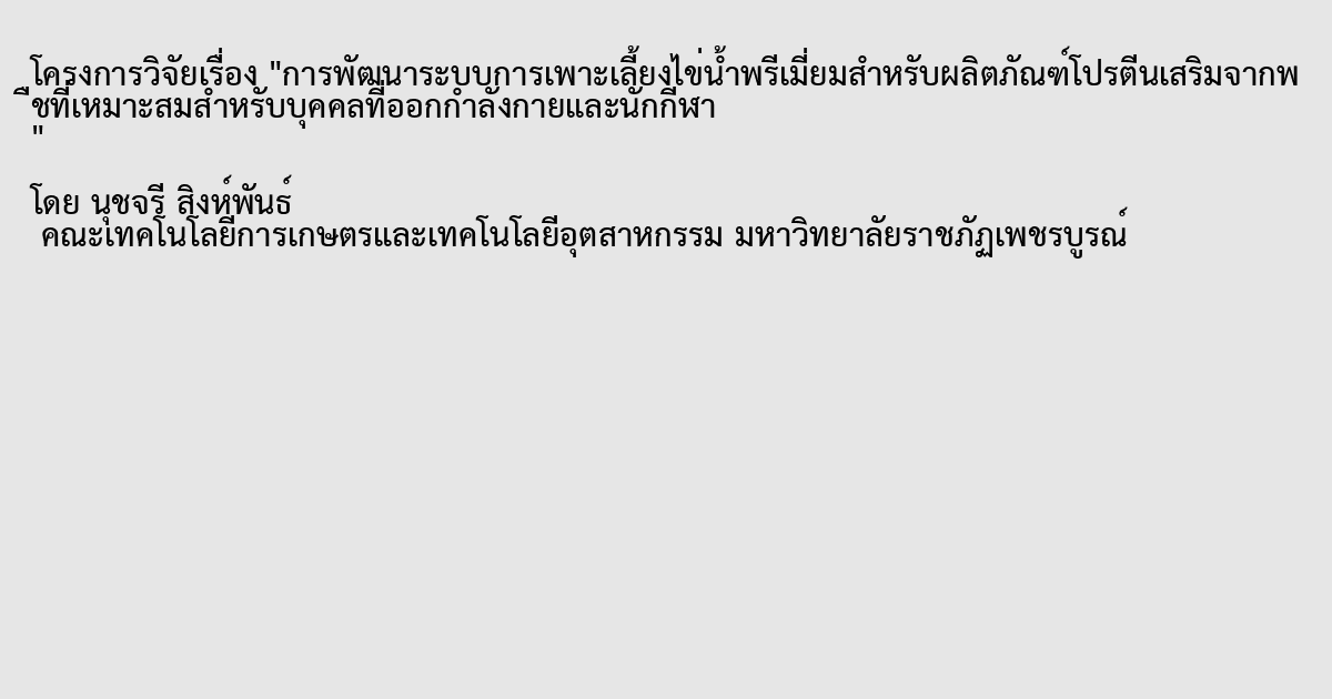 การพัฒนาระบบการเพาะเลี้ยงไข่น้ำพรีเมี่ยมสำหรับผลิตภัณฑ์โปรตีนเสริมจากพืชที่เหมาะสมสำหรับบุคคลที่ออกกำลังกายและนักกีฬา