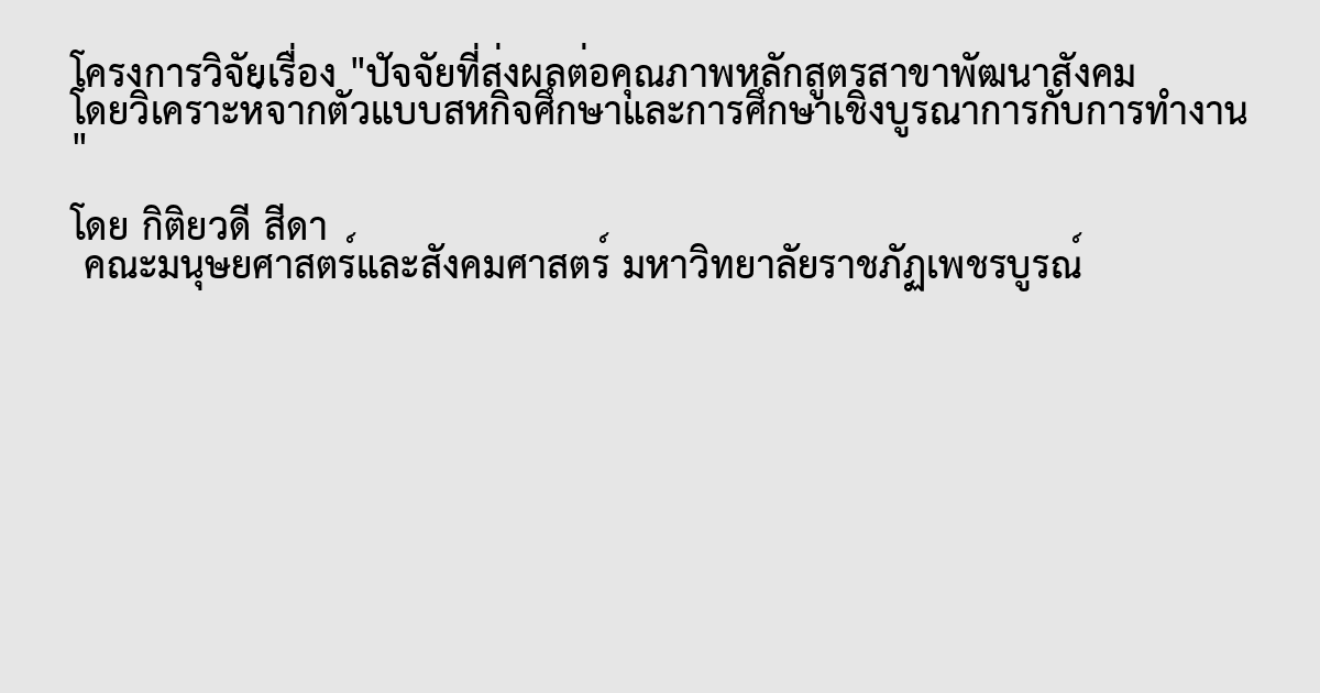 ปัจจัยที่ส่งผลต่อคุณภาพหลักสูตรสาขาพัฒนาสังคม โดยวิเคราะห์จากตัวแบบสหกิจศึกษาและการศึกษาเชิงบูรณาการกับการทำงาน