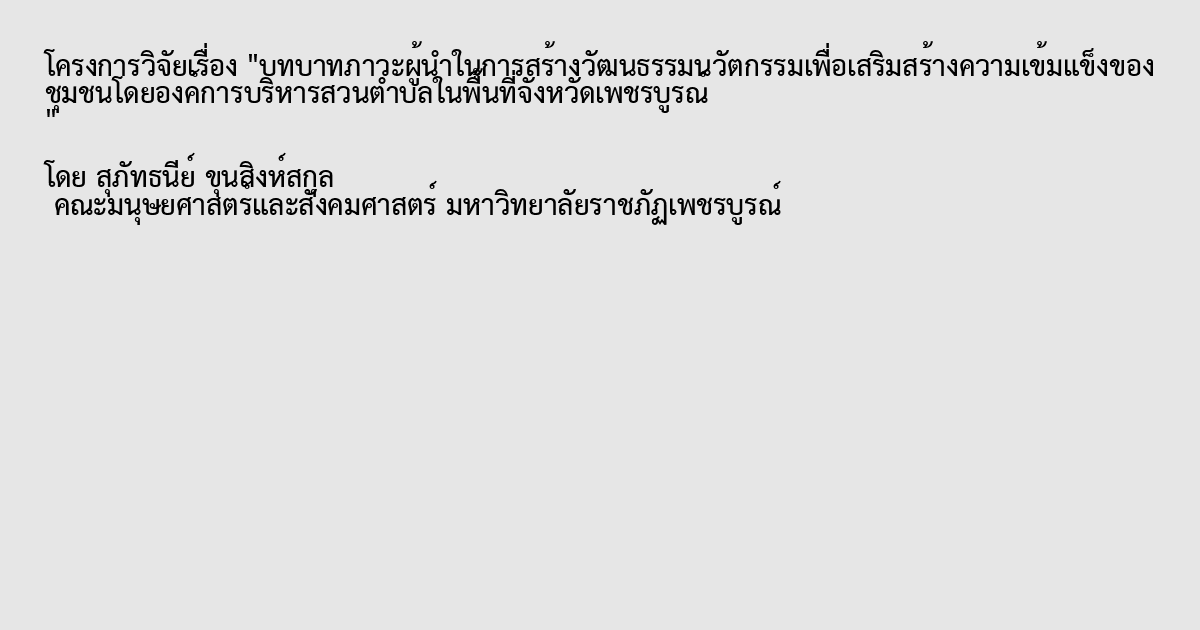 บทบาทภาวะผู้นำในการสร้างวัฒนธรรมนวัตกรรมเพื่อเสริมสร้างความเข้มแข็งของชุมชนโดยองค์การบริหารส่วนตำบลในพื้นที่จังหวัดเพชรบูรณ์