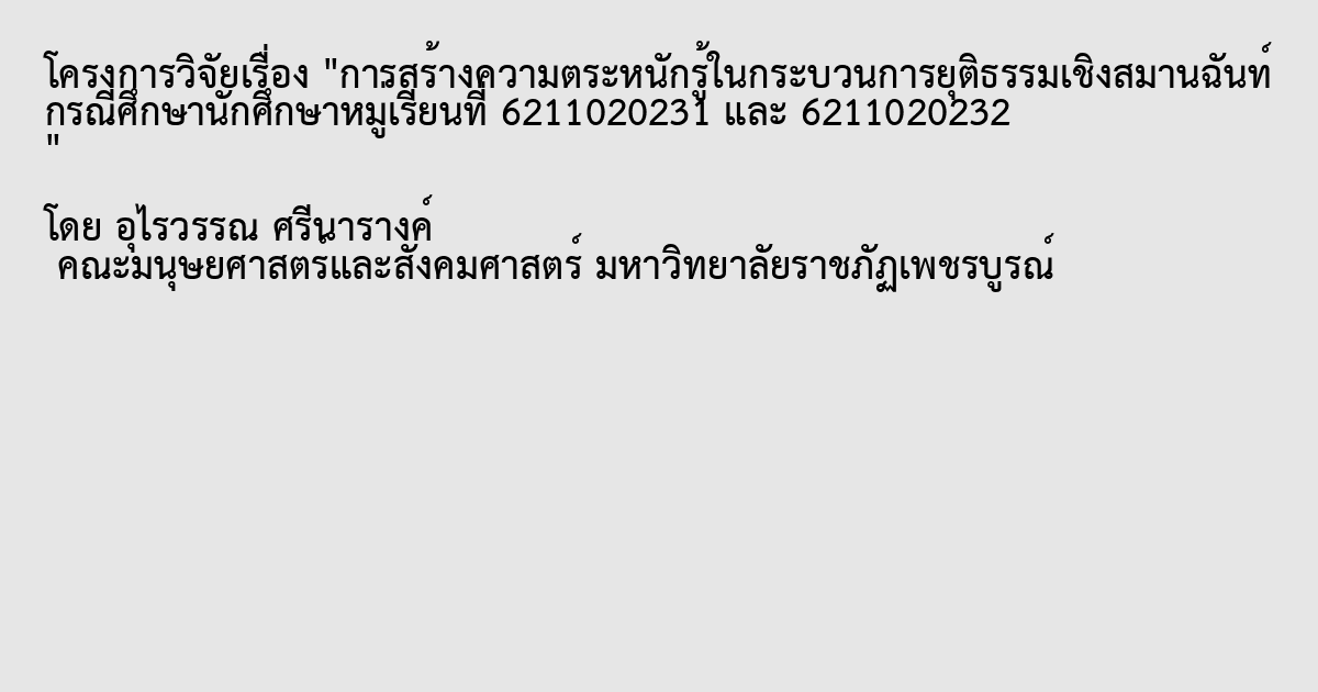 การสร้างความตระหนักรู้ในกระบวนการยุติธรรมเชิงสมานฉันท์ กรณีศึกษานักศึกษาหมู่เรียนที่ 6211020231 และ 6211020232